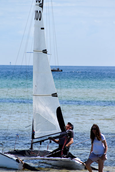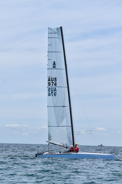 Then for race two the breeze started to fade through the race, just enough for some, too much for others. The biggest winner in this? Sam Chiodo, who just racked up his first bullet. He relished in the bigger swells, using a laser exactly how it was meant for – planing over the top of the water. Why does this work for some boats and not for others? The answer can be found by looking under your boat while it’s on the trailer – it all comes back to hull shape. But that doesn’t take anything away from Sam – he did an amazing job and scored his biggest result yet.